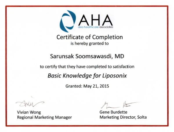 - 🥇Certificate of completion Basic Knowledge for Liposonix, Asia healthcare associates
