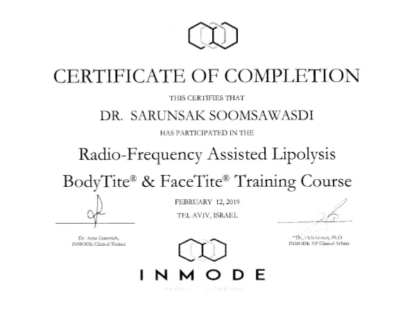 - 🥇Certificate Of Completion Radio-Frequency Assisted Lipolysis BodyTite & FaceTite Training Course INMODE Clinical Training Center TELAVIV, ISRAEL