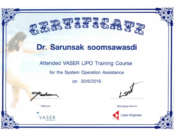 - 🥇Certificate Attended Vaser Lipo Training Course of system Operation Assistance